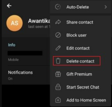 میتوانید هر مخاطب موردنظر را از تلگرام حذف کنید. با این کار، این اسم از دفترچه تلفن اصلی حذف نمیشود، بلکه فقط از پلت فرم حذف می شود. مراحل زیر را انجام دهید:
