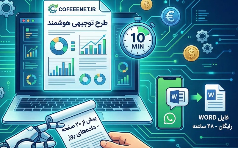 تصور کنید بتوانید تنها با چند کلیک و در کمتر از ۱۰ دقیقه، یک طرح توجیهی جامع، با محاسبات مالی دقیق و بهروز دریافت کنید. این یک رویا نیست؛ بلکه خدمتی نوین از اولین و تنها سامانه هوشمند تولید طرح توجیهی اختصاصی در ایران، یعنی وبسایت کافی نت (Cofeeenet.ir) است.